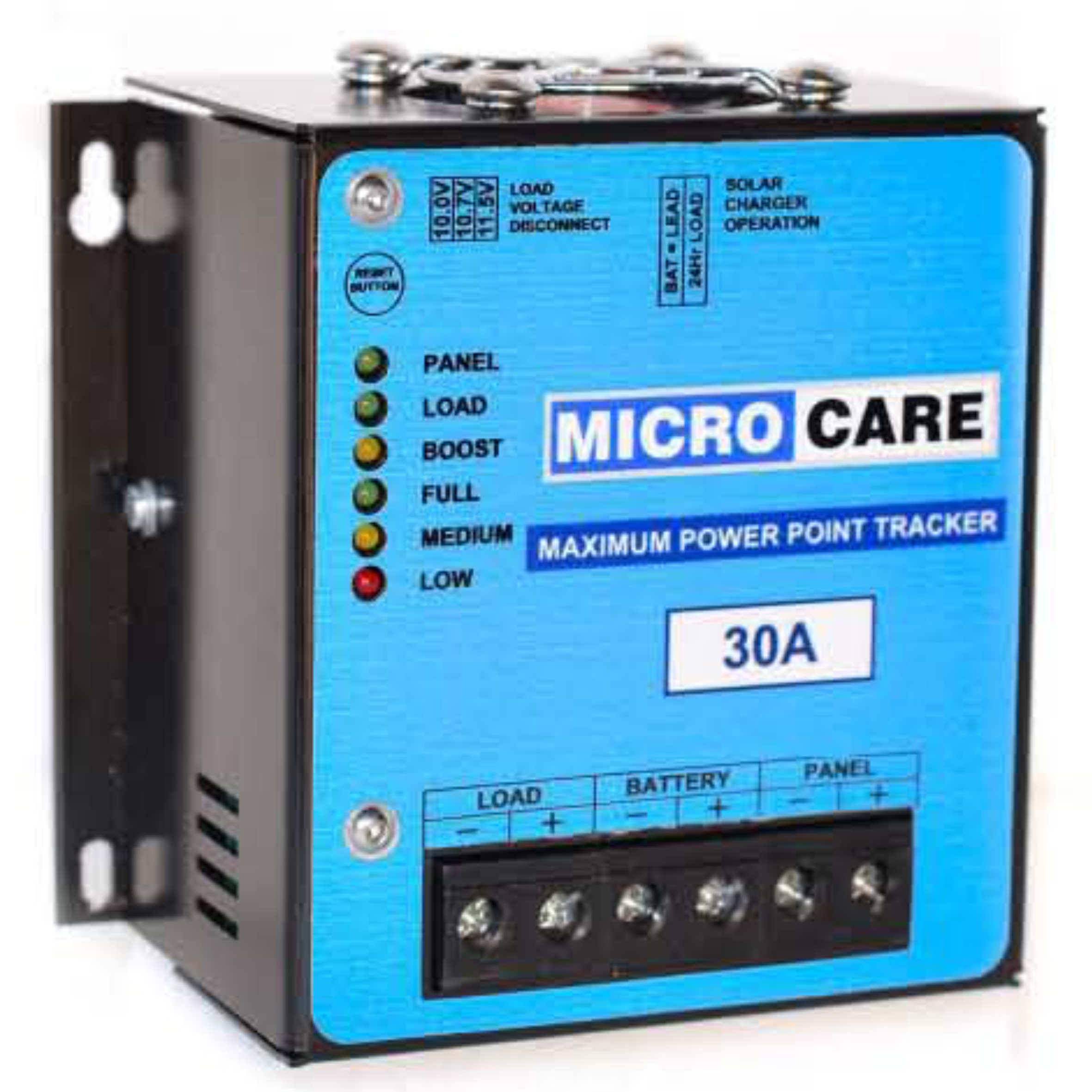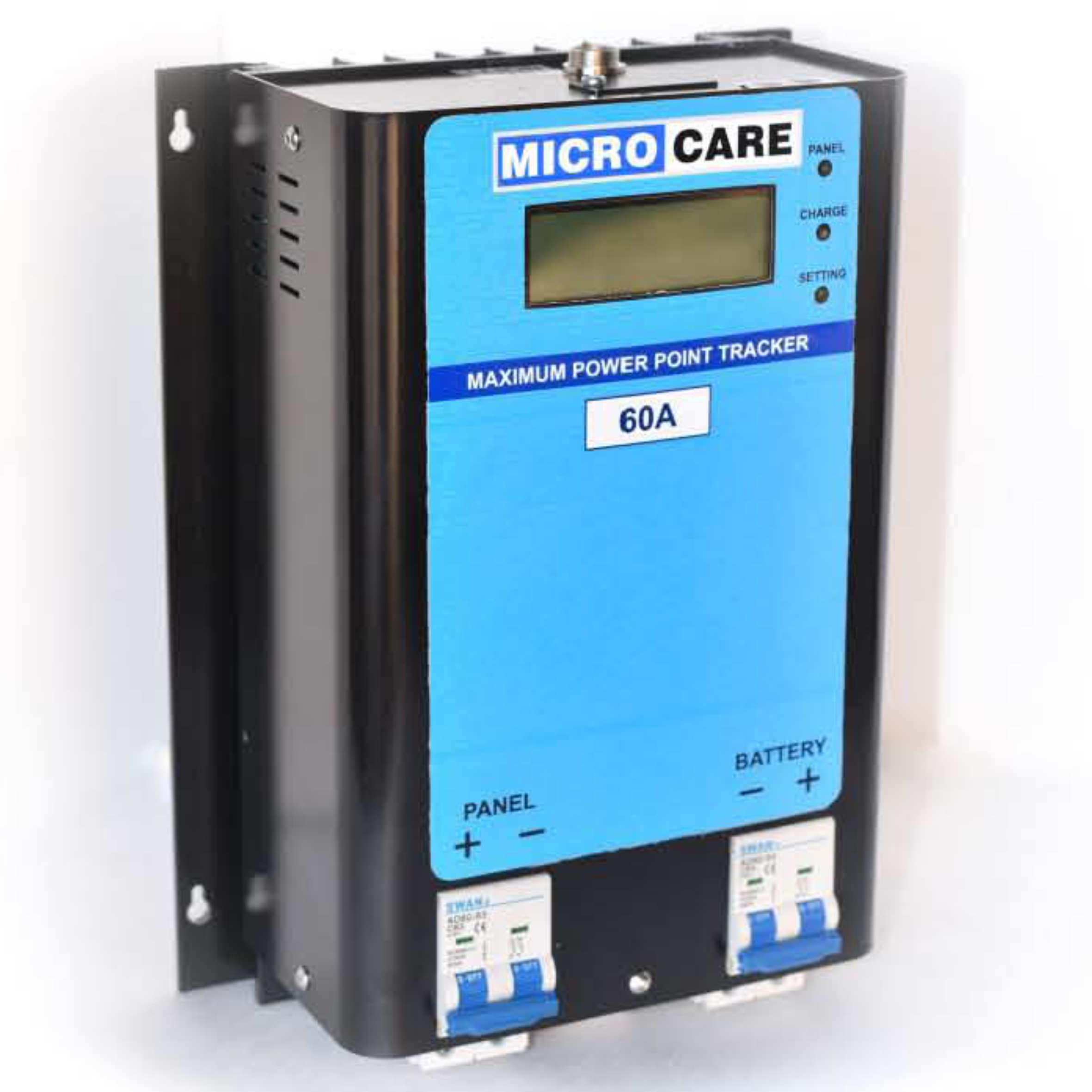 The Microcare Solar Controller (also known as a Maximum Power Point Tracker) extracts the maximum power from the Solar Panels while automatically