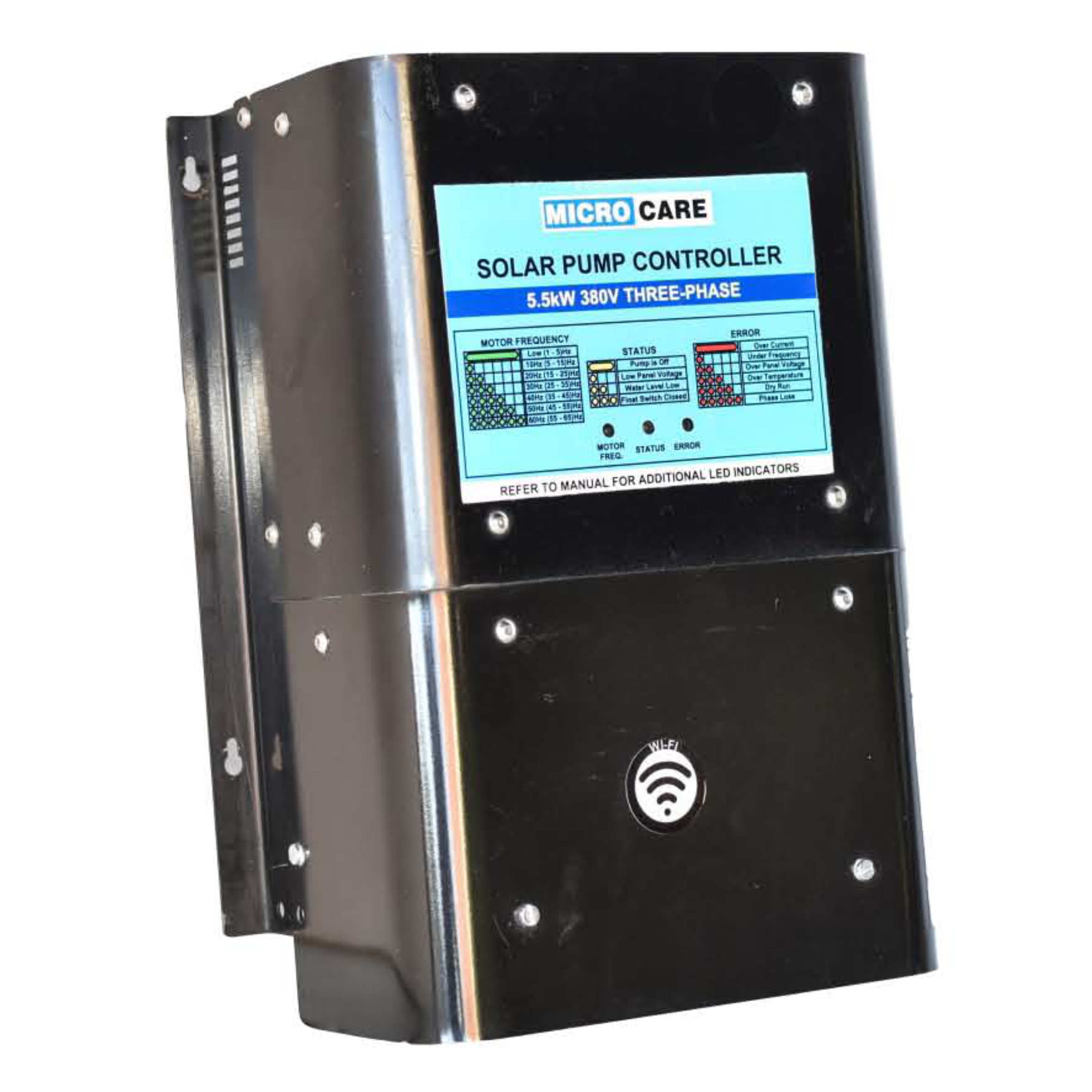 The Microcare Solar Pump Controllers have built-in Variable Speed Drives (VSD) which enable the user to adjust the flow of water from the pump by varying the speed of the drive thus reducing the wastage of energy. Designed to power remote applications of pumps & motors, the unit is based on the Microcare Solar Controller which allows for a lower PV Voltage Operation than what is available on the market.